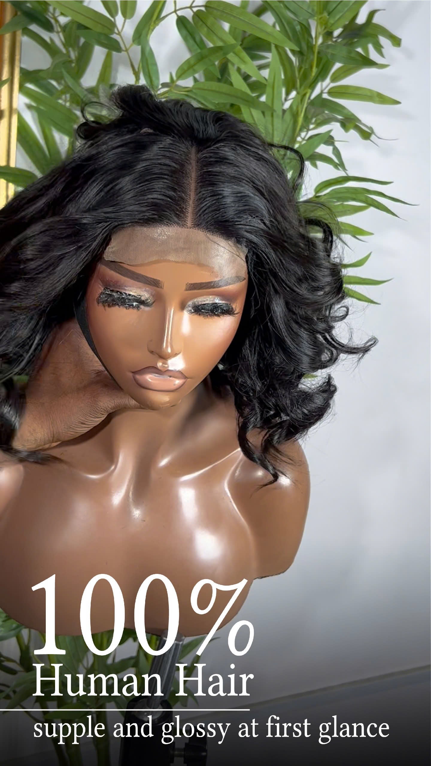 Midnight Super Bouncy 5x5 HD Lace Short Bob Human Hair Glueless Wig No Pre Cut